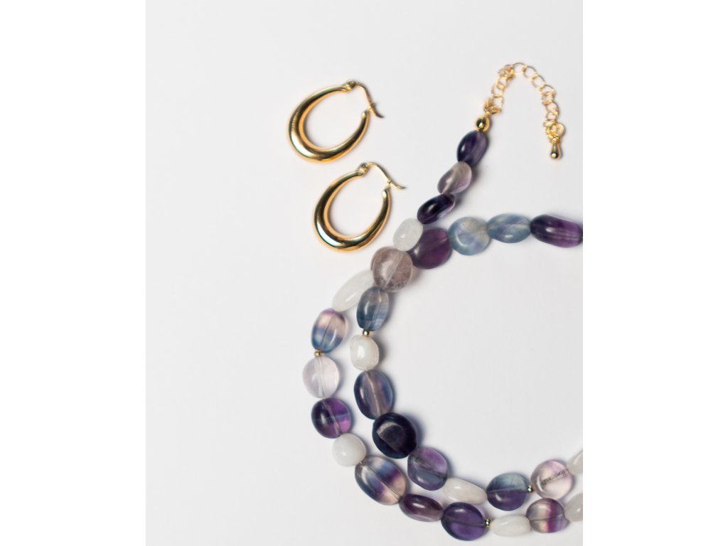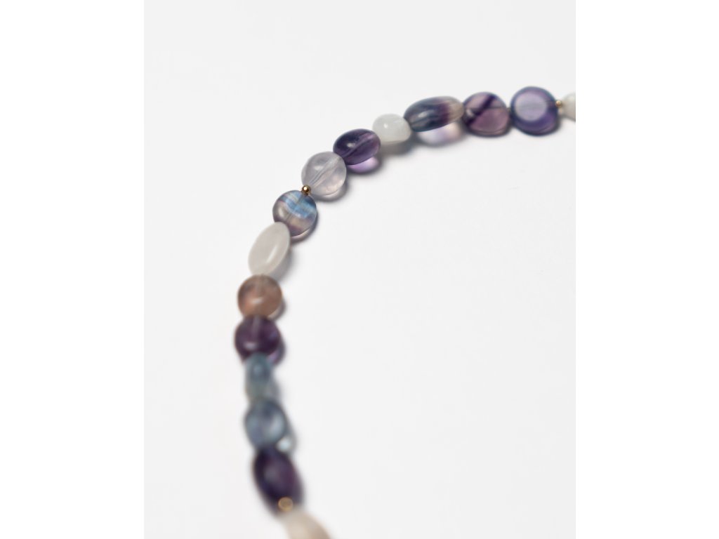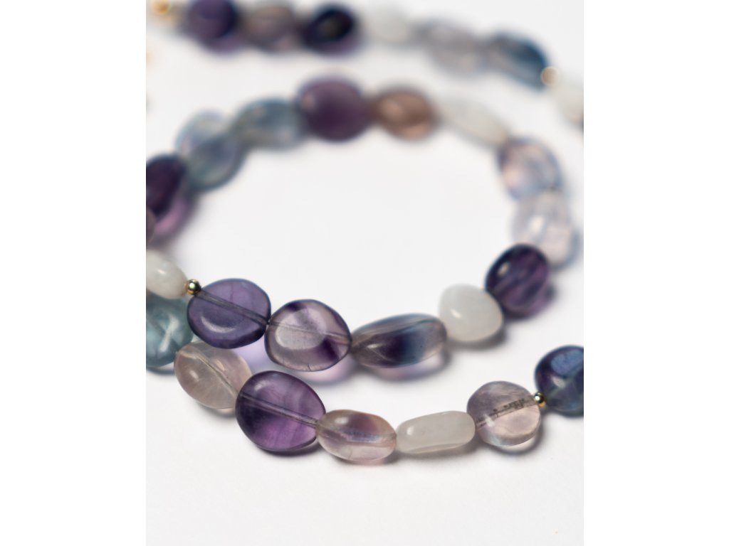 The Mystic Glow Choker is a captivating piece of jewelry that beautifully blends the ethereal beauty of moonstone with the vibrant colors of fluorite. This enchanting choker features shimmering moonstone beads, known for their soft, iridescent glow that shifts with the light. Paired with the colorful, translucent hues of fluorite, ranging from greens and purples to blues, this choker creates a mesmerizing and magical effect. Moonstone is celebrated for its calming and intuitive properties, while fluorite is known for its ability to enhance clarity and focus. The Mystic Glow Choker is perfect for those who appreciate the mystical and the elegant, making it a stunning addition to any jewelry collection.